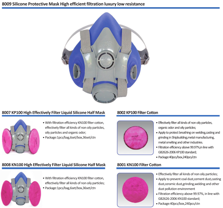 8008 KN100 High Effectively Filter,Liquid Silicone Half Mask
