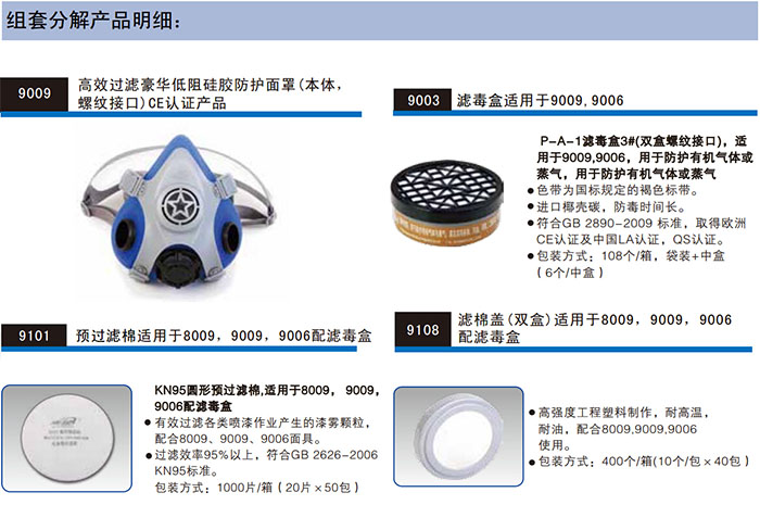 7.另外配防塵濾棉及濾棉蓋,特別適用于噴漆作業(yè)防護。